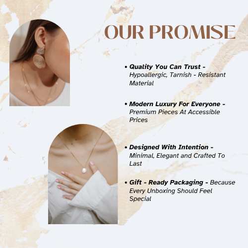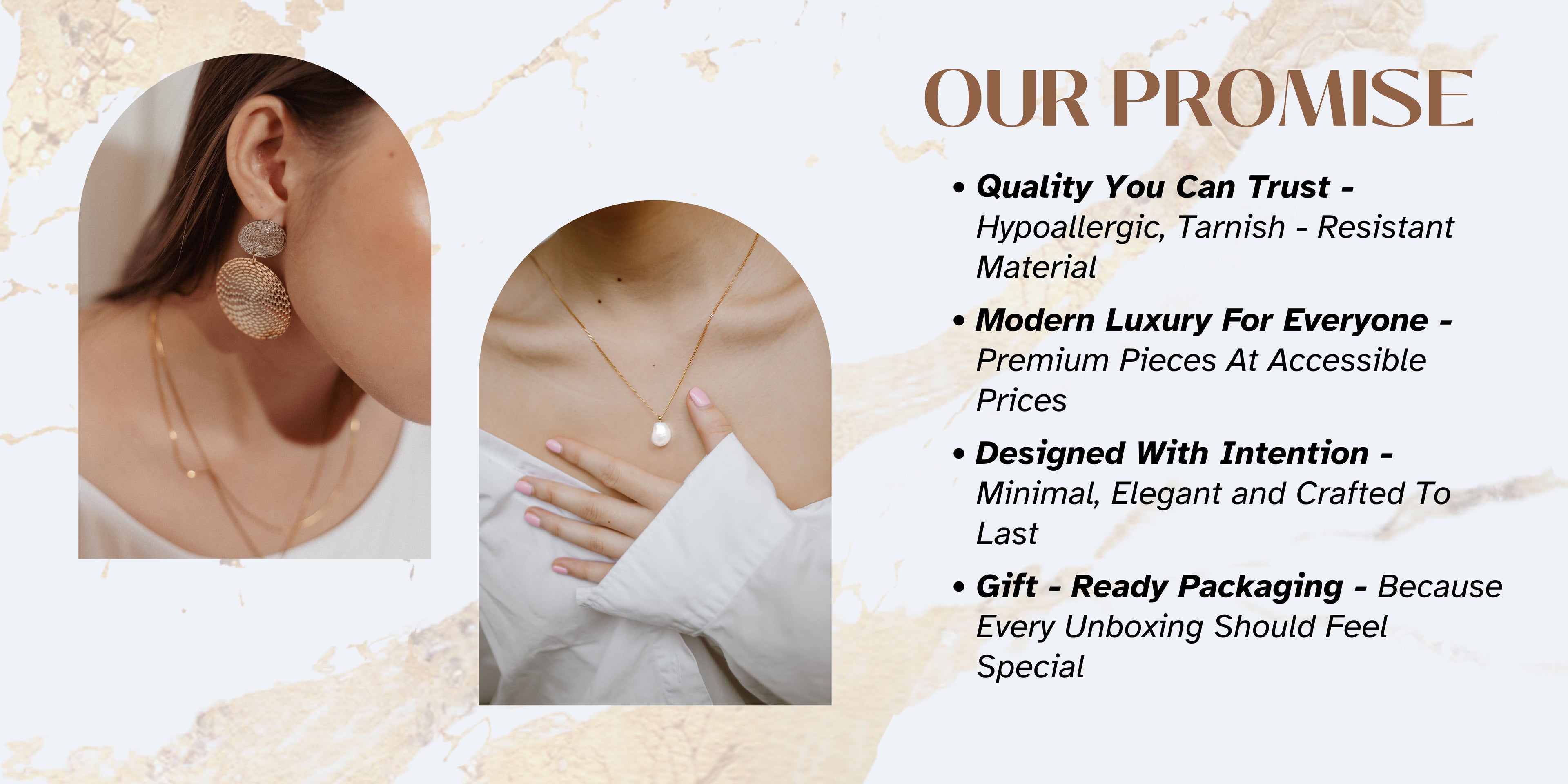 Our journey began with a simple idea: to create modern, elegant jewellery that feels personal. Pieces that aren't just worn - but loved. From delicate designs to bold statements, each item is inspired by real moments, meaningful connections, and the belief that true luxury is defined by the one who wears it.
